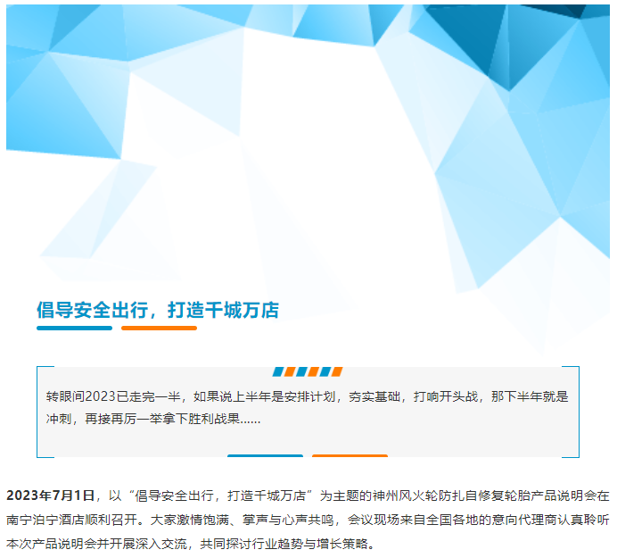 倡導(dǎo)安全出行,打造千城萬店”神州風(fēng)火輪2023年南寧站產(chǎn)品說明會(huì)在所有來賓的掌聲中圓滿落幕。未來,隨著代理商隊(duì)伍的不斷壯大,神州風(fēng)火輪還將繼續(xù)增強(qiáng)賦能力度,提升營(yíng)銷效率,優(yōu)化代理體驗(yàn),實(shí)現(xiàn)深度合作。輪胎行業(yè)已然是風(fēng)口,請(qǐng)把握機(jī)遇,加入神州風(fēng)火輪大家庭,一起共創(chuàng)財(cái)富、共創(chuàng)未來!